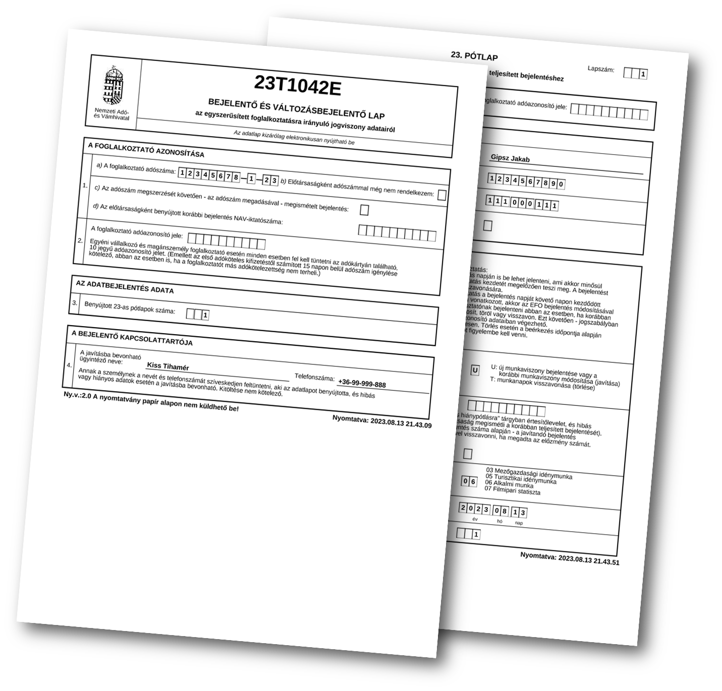 A bevallási dokumentumok esetén biztosított a T1042E és a 08-as nyomtatványok feltöltése és feldolgozása egyszerűsített foglalkoztatás körében.